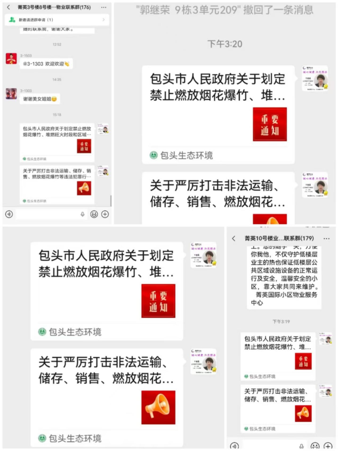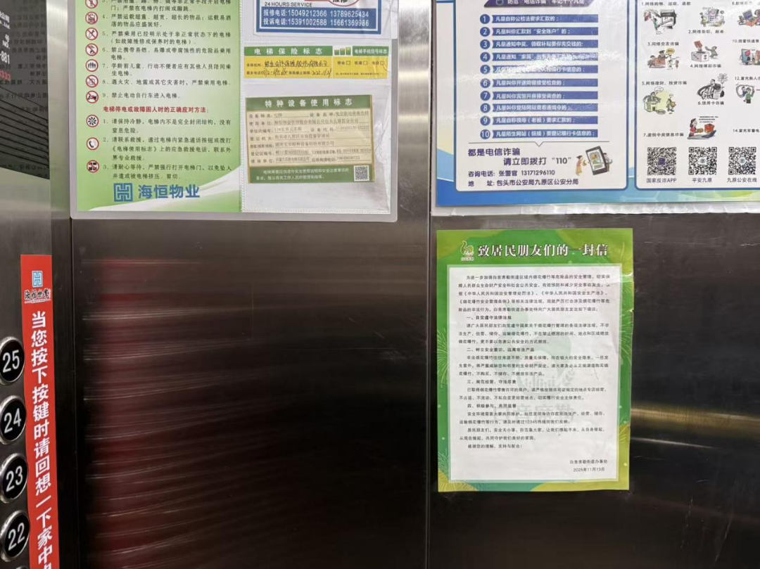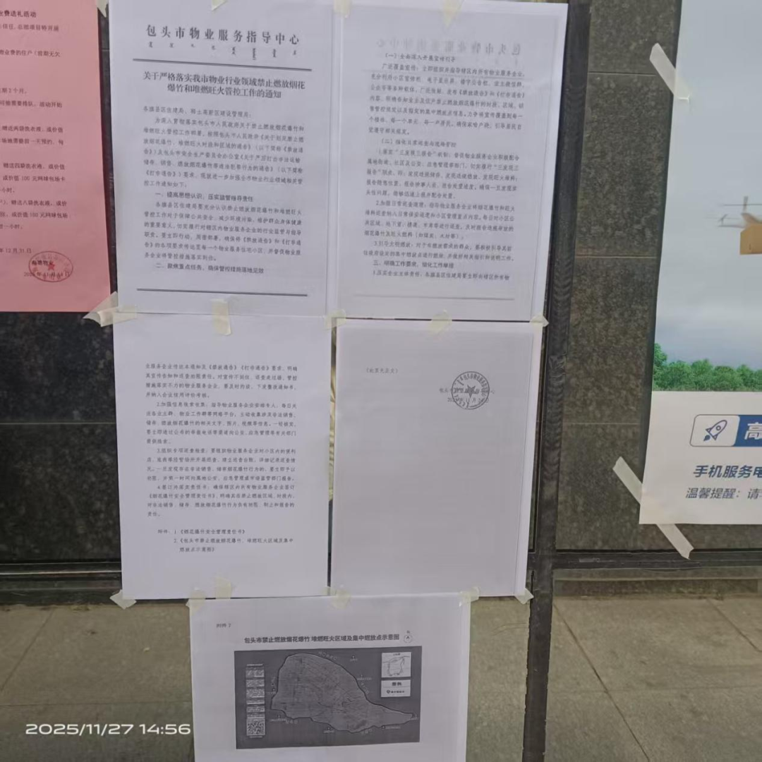 包头各住宅小区,电梯轿厢、单元楼道的醒目位置已整齐张贴起禁燃宣传海报,图文并茂的内容把禁燃要求和安全提示讲得明明白白,小区广播循环播报禁燃倡议,让安全意识深入人心。针对小区楼道、消防通道、地下车库等重点区域,物业工作人员开展“拉网式”杂物清理,及时清运易燃物品,确保疏散通道畅通无阻。线上渠道宣传同步发力,各物业企业通过业主群、朋友圈、电子屏等线上渠道,持续推送禁燃政策解读、典型火灾案例警示等内容,让禁燃理念精准触达每一户家庭。此次专项行动中,物业企业始终坚持“宣传+排查”双管齐下,既做好政策普及,更抓实隐患整改,用扎实的行动赢得了业主的广泛认可。