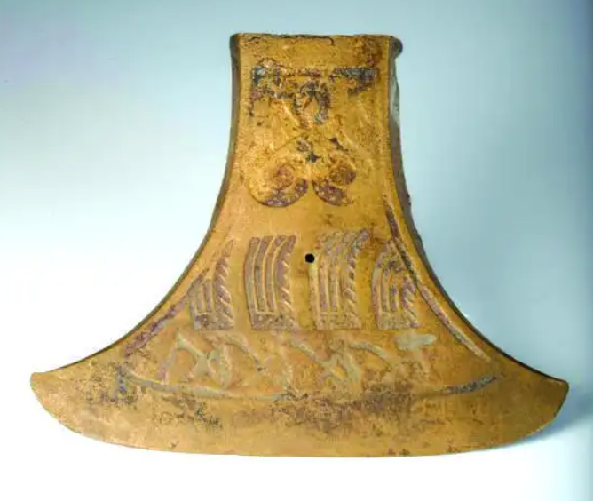 ▲战国羽人竞渡纹铜钺。(图片来源:文汇网)
