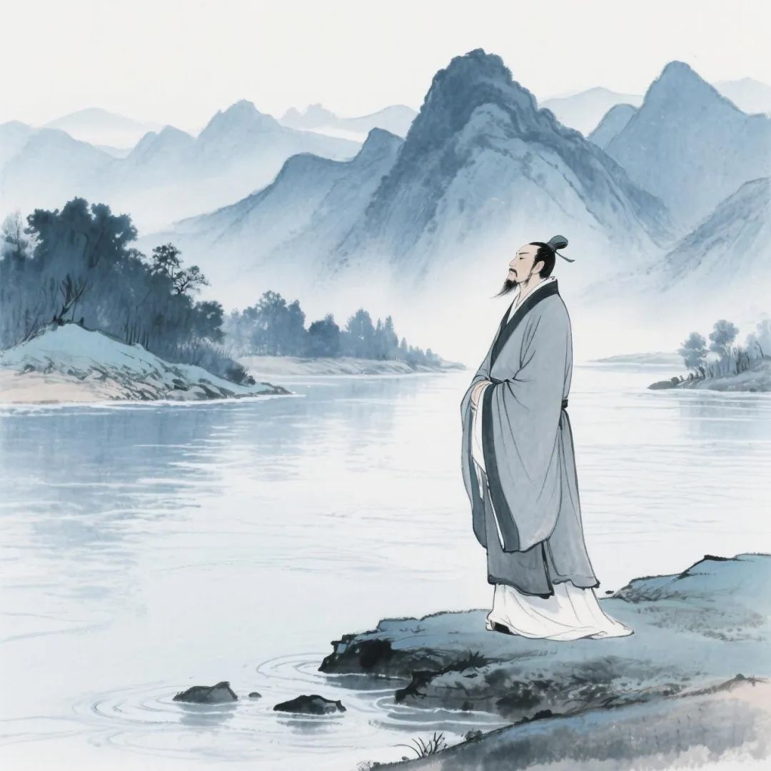 ▲屈原悲愤自投汨罗江 ( AI制图)
