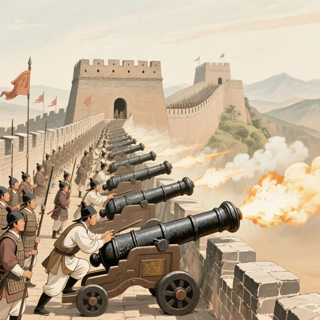 ▲装备火炮的明长城防御体系(AI制图)