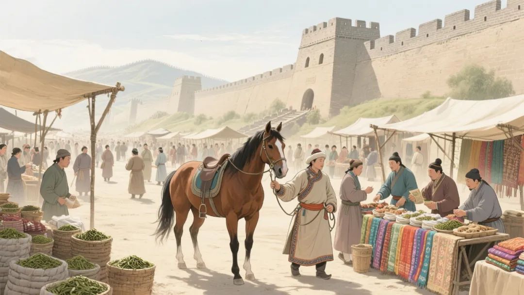 ▲长城沿线的“茶马互市”(AI制图)