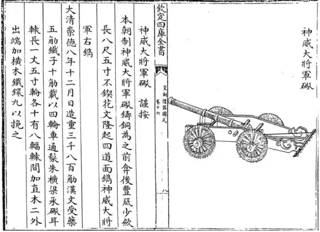 ▲《四库全书》中的“神威大将军炮”,为延续自明朝从葡萄牙引进的红夷大炮。(图片来源:澎湃网)