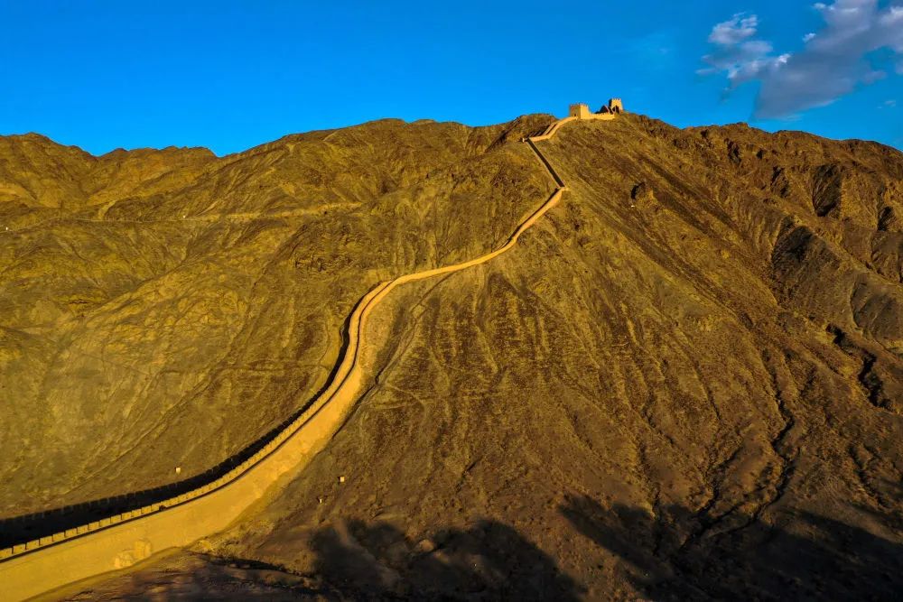 ▲甘肃省嘉峪关市拍摄的悬壁长城(无人机照片)。新华社记者 刘金海 摄