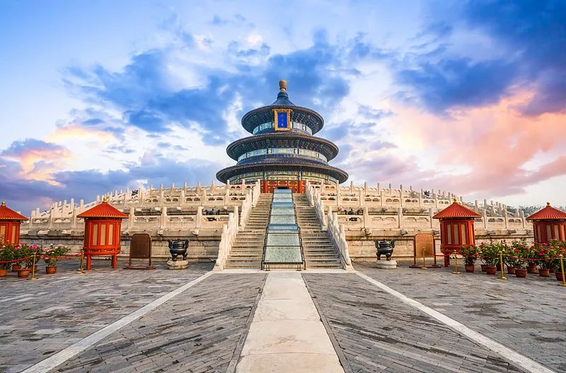 ▲天坛祈年殿。天坛,为明、清两代皇帝祭天、祈谷和祈雨的场所。天坛暗合“天圆地方”的宇宙观,也是“王权天赐”“天下一统”的象征。(图片来源:视觉中国)