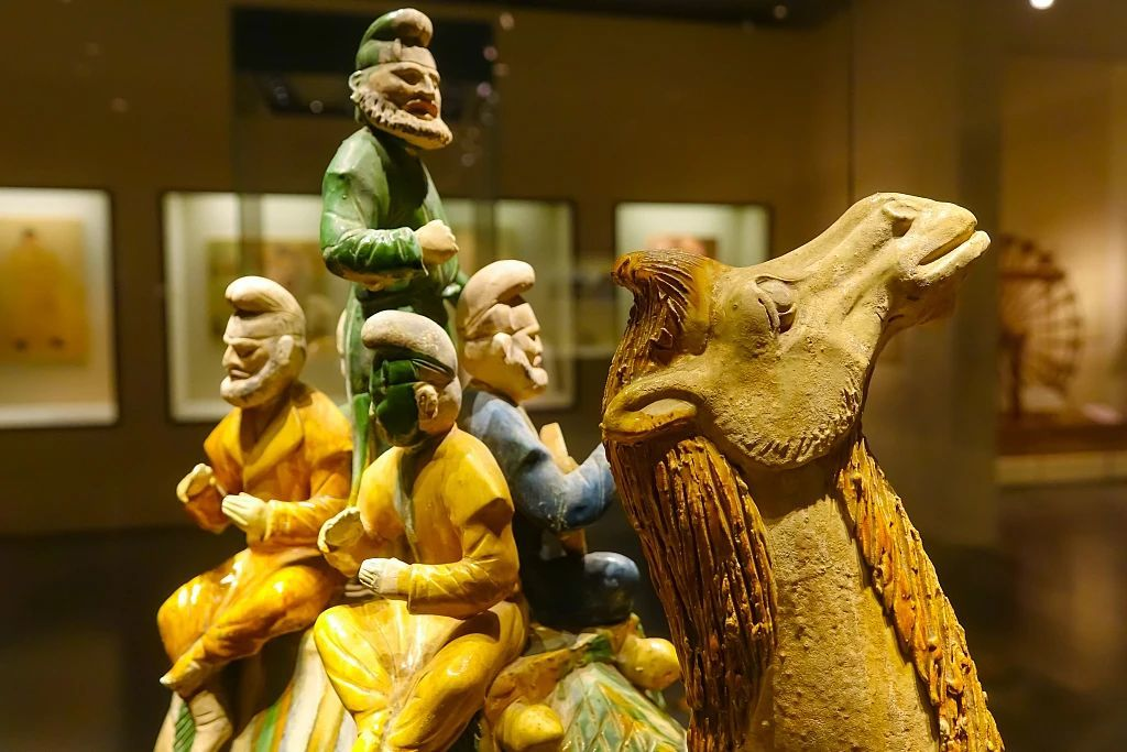 ▲唐三彩骆驼载乐俑包含浓郁的“异域情调”,反映了唐代中外文化经济交流,也体现了各民族间交往的空前盛况。(图片来源:视觉中国)