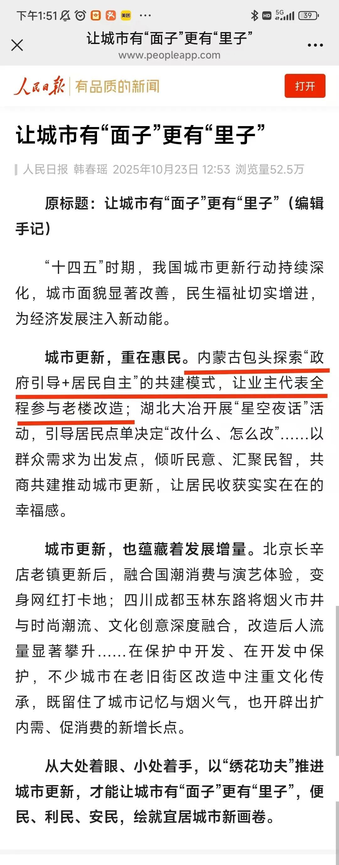 这份登上《人民日报》的认可,不仅是对包头城市建设工作的肯定,更是咱老百姓生活越来越好的真实写照。想知道这篇文章还分享了哪些城市建设的好思路?快来一起看看原文吧!